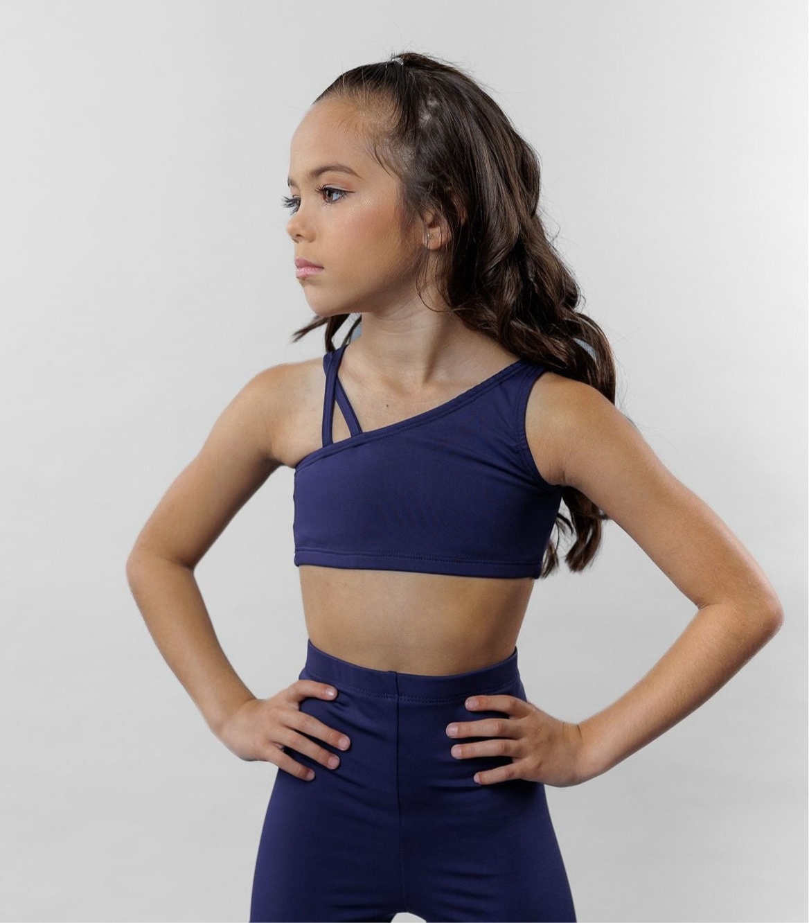 One shoulder, with two straps the help support on the other side. Perfectly cute and sleek to pair with briefs, ultra shorts, and our upcoming leggings!